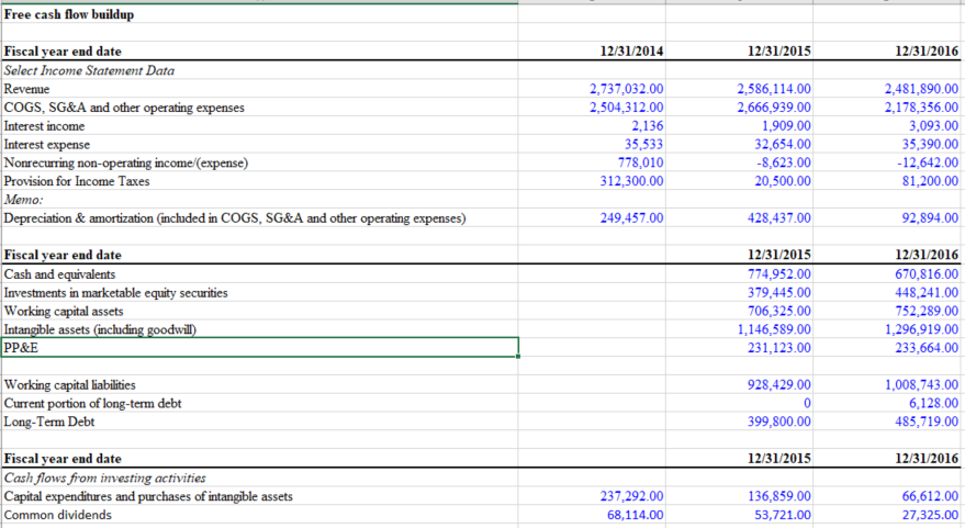 Free Cash Flow Buildup 12 31 2014 12 31 2015 Chegg Com